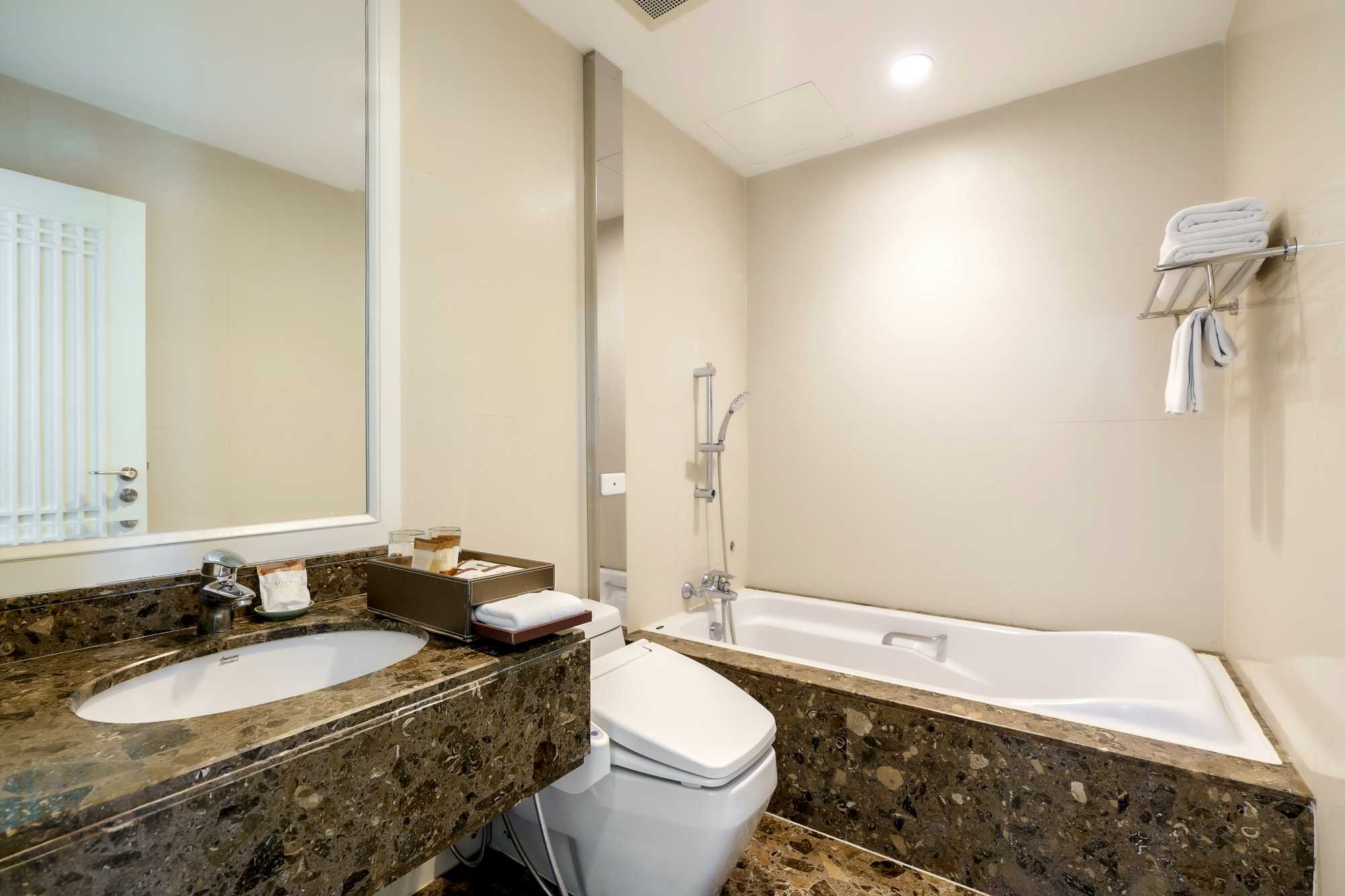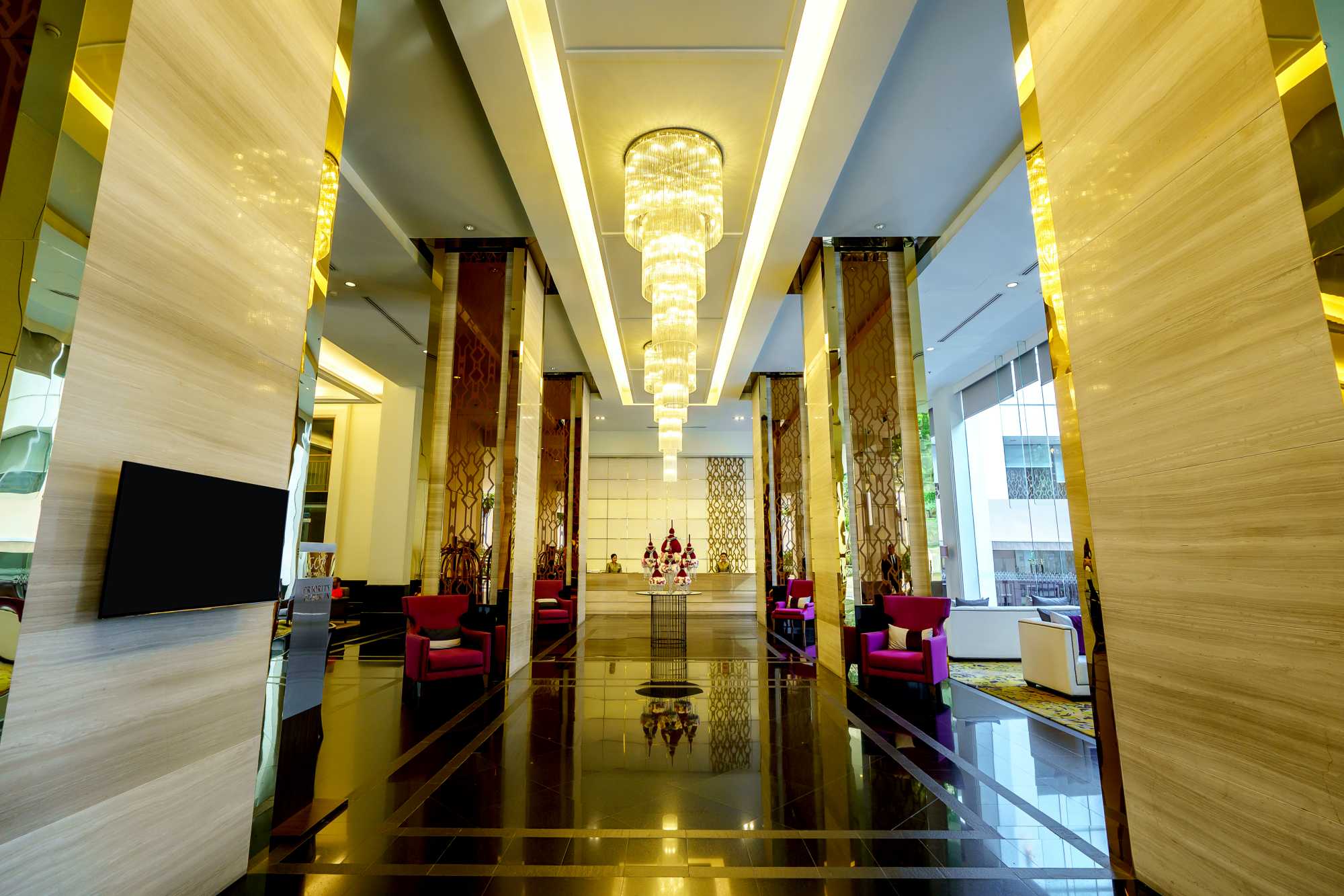 Grande Centre Point Ploenchit is a luxurious hotel in Bangkok known for its spacious rooms with private balconies offering panoramic city views, a prime location near the Ploenchit BTS station, and amenities like a rooftop outdoor pool, a high-quality restaurant, the Let’s Relax Spa, and complimentary daily refreshments in the lobby. Guests can enjoy modern facilities, an on-site gym, and a variety of suite options catering to different needs, from deluxe to large family-friendly suites.